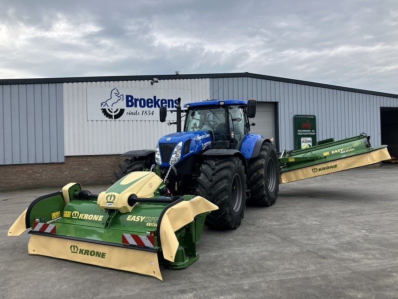 Afgelopen week heeft Loonbedrijf Hiemstra Deinum de nieuwe Krone maaicombinatie opgehaald. De combinatie bestaat uit een Krone B870CV Collect en een Krone F320CV Frontmaaier met een totale werkbreedte van 8.70 meter. De kneuzer met de haak klepels zorgen voor een zeer goede kneuscapaciteit. Terwijl de breed-afleg er voor zorgt dat het gewas keurig breed op het veld ligt voor een maximale droging.